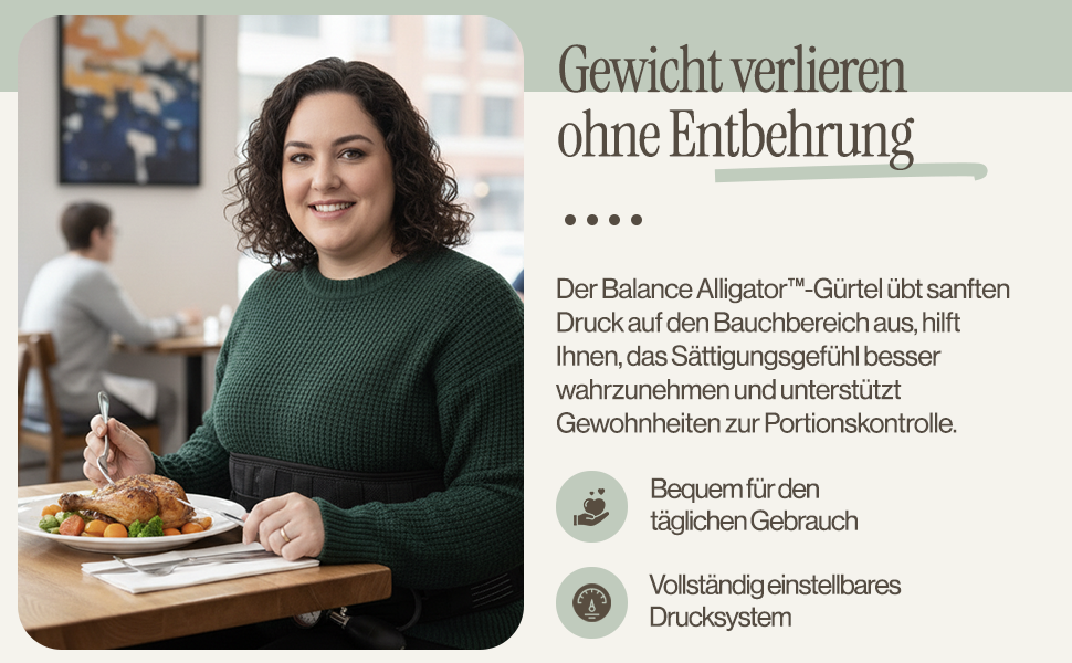 Der Balance Alligator ist ein CE-zertifizierter Kompressionsgürtel zur mechanischen Unterstützung der Gewichtsreduktion.